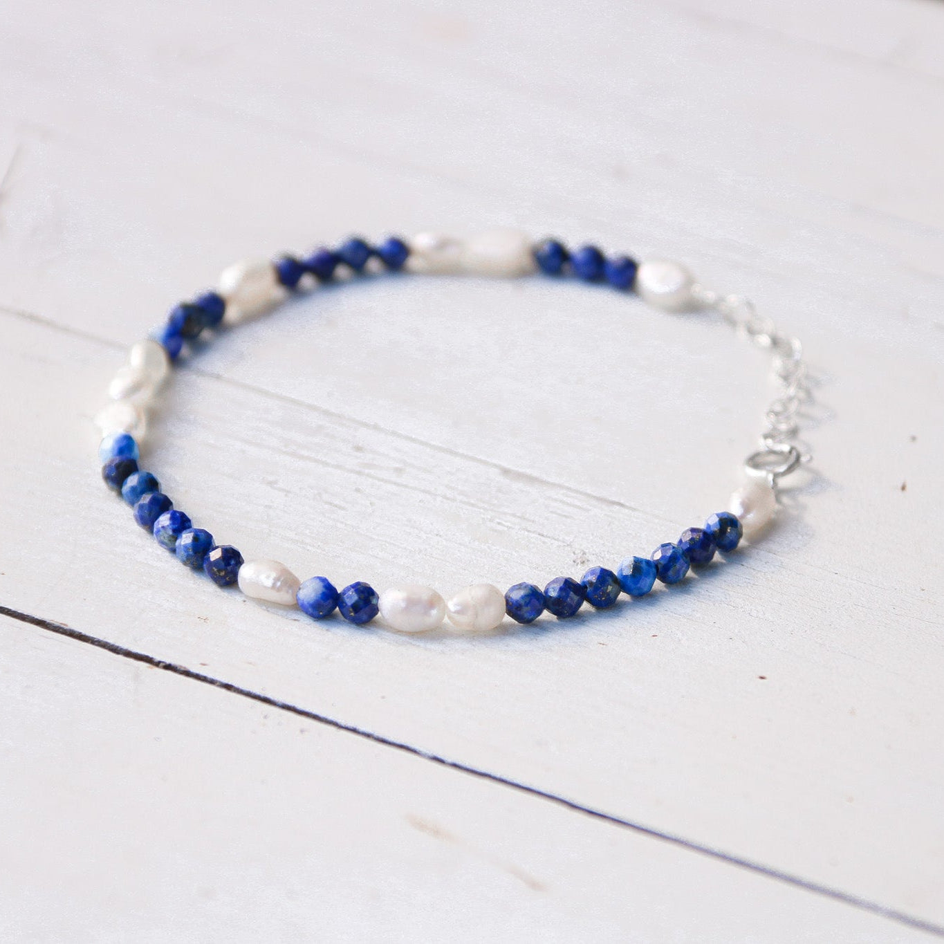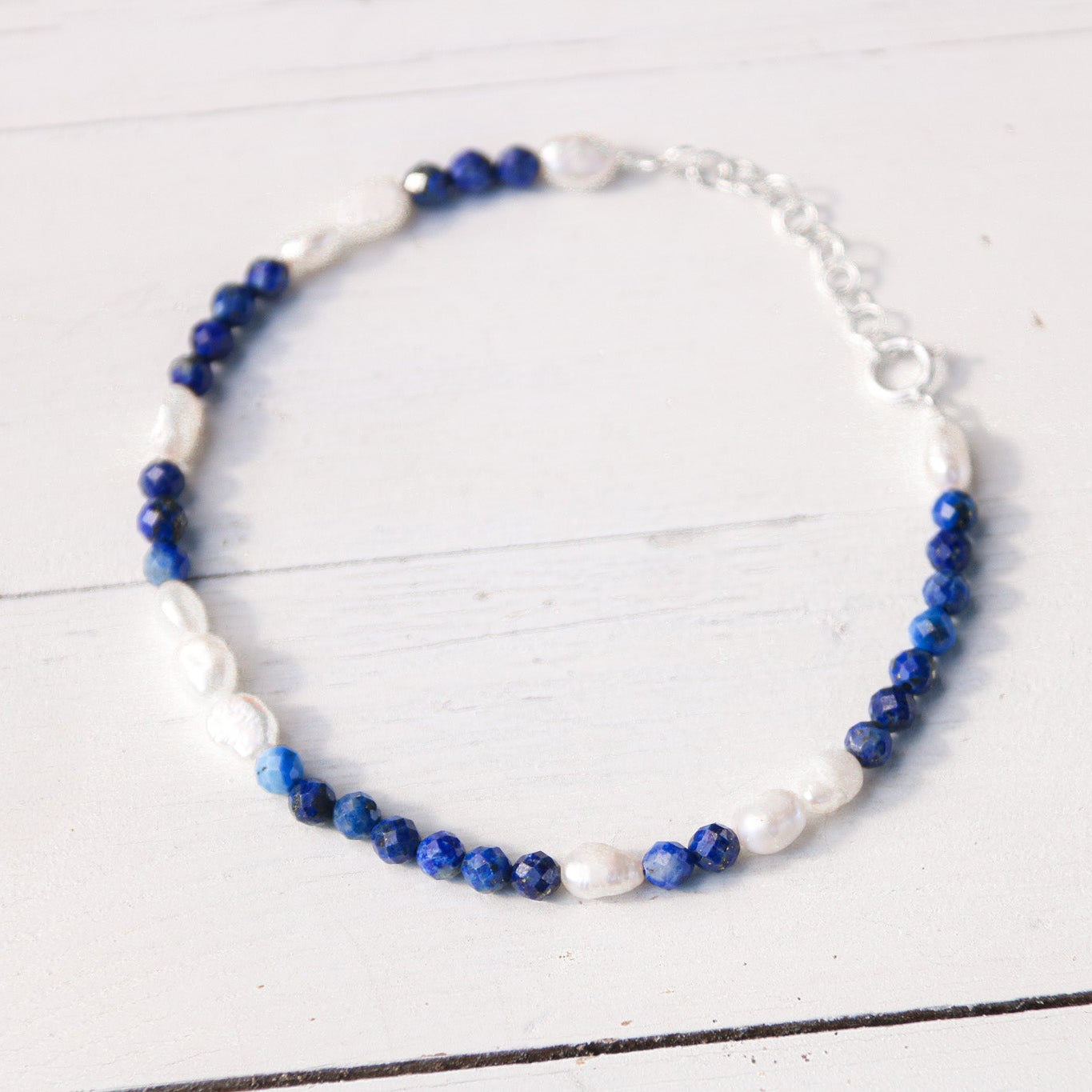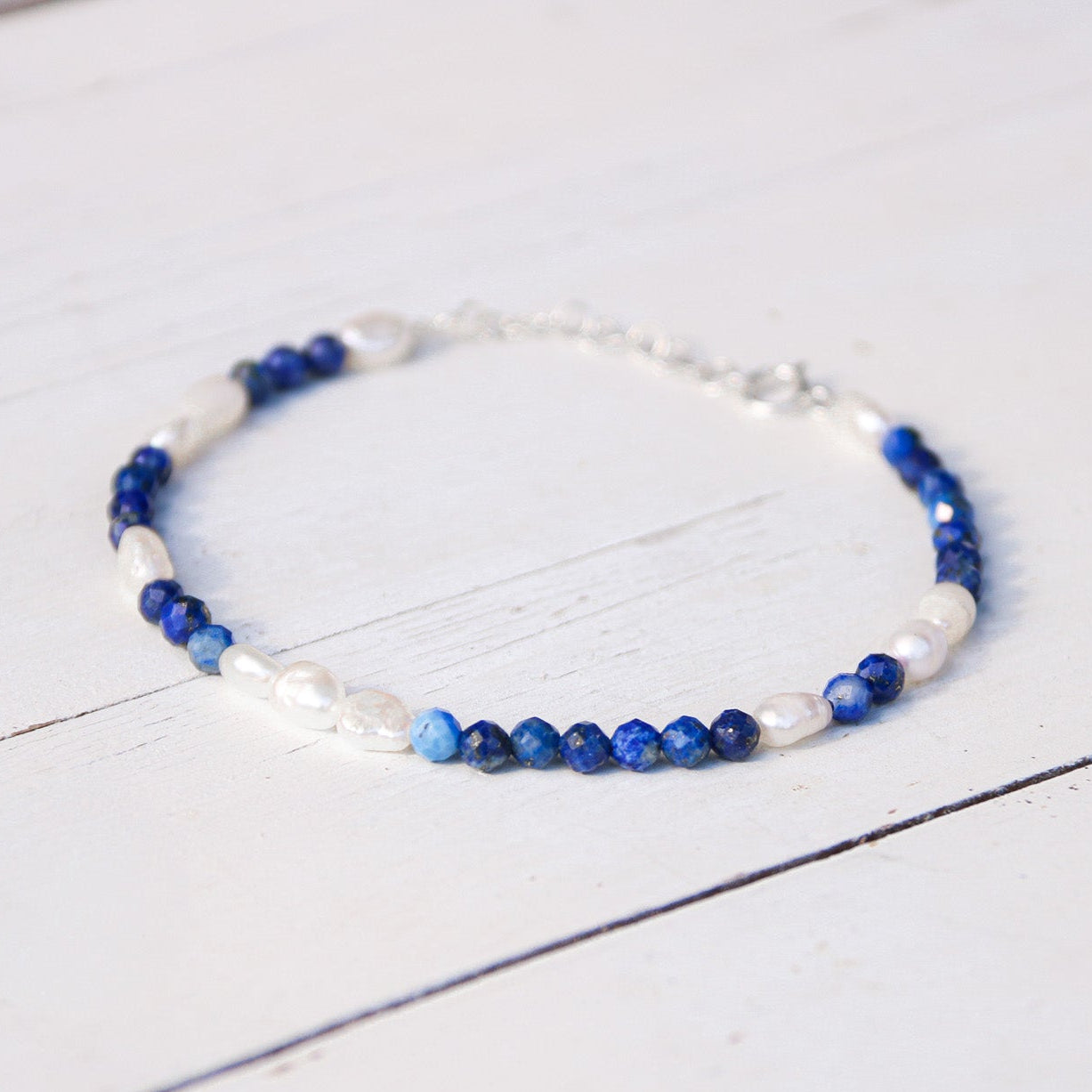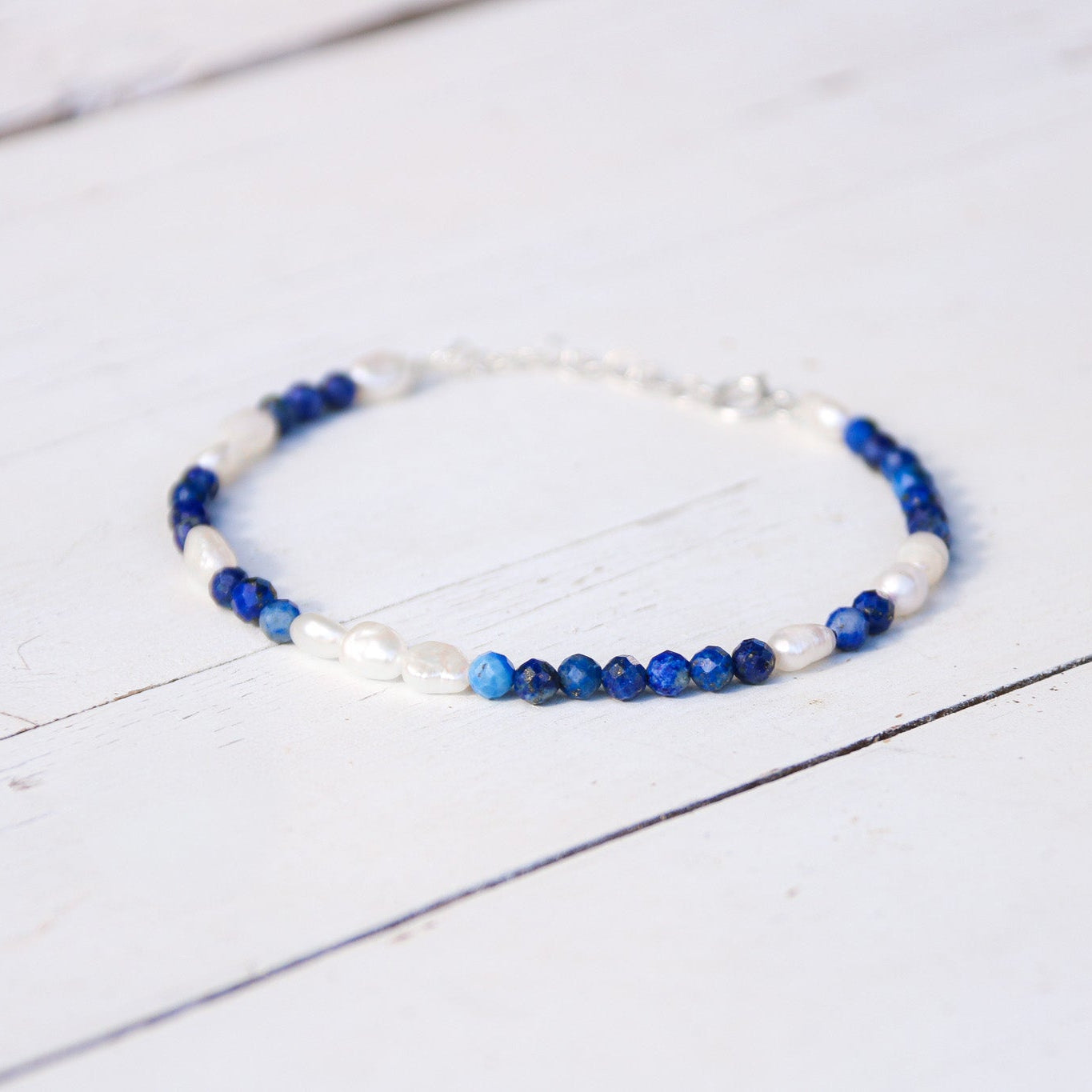 הצמיד משלב פנינים אמיתיות צד לאבנים בגוון לאפיס לאזולי חיבור בין עומק הים לכחול העוצמתי של הגל ומביאה את רוח ה־Cloud 9 בשירגאו אל הצמיד.