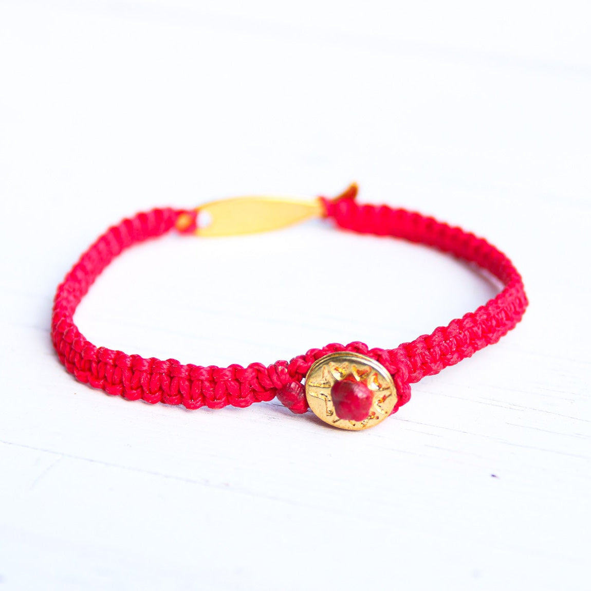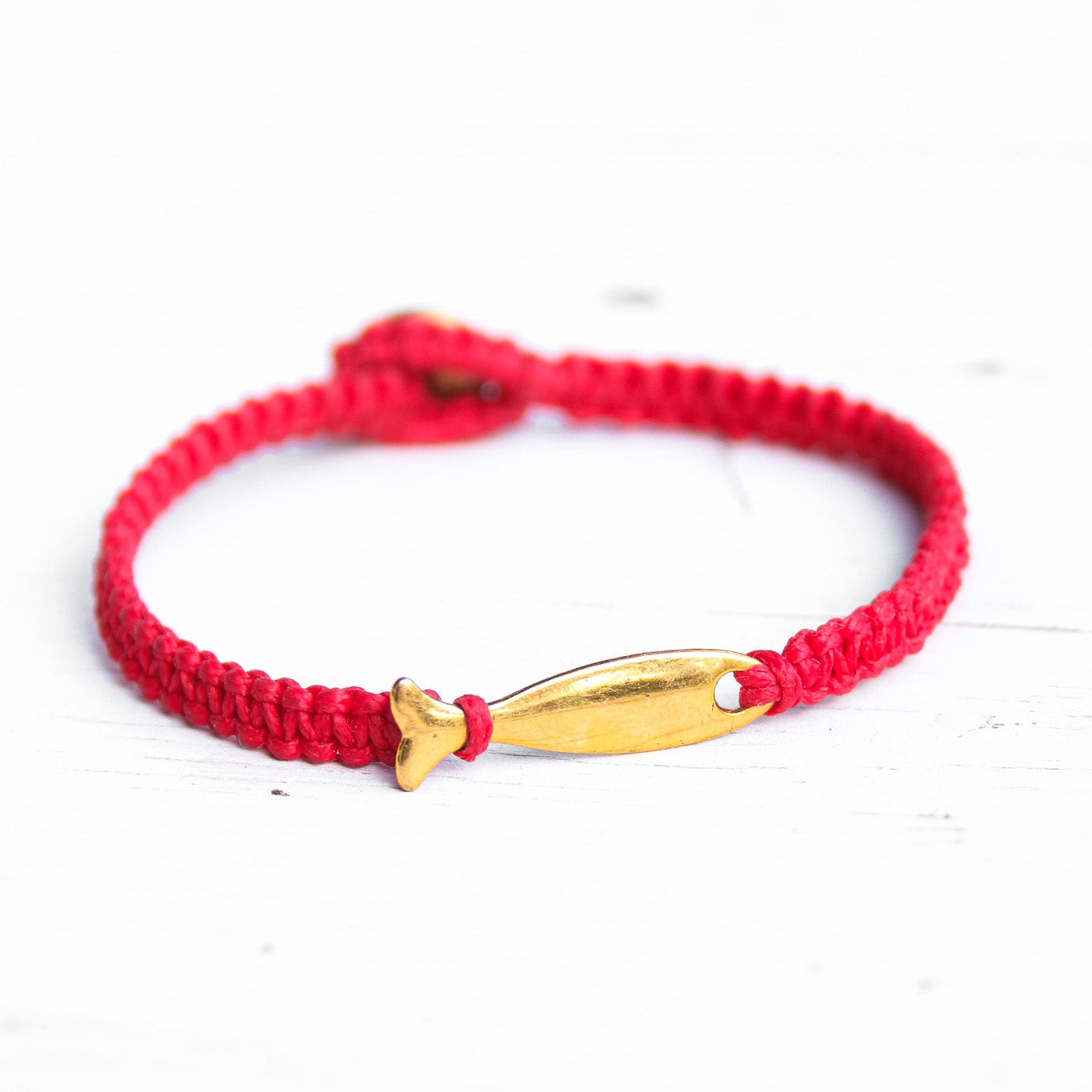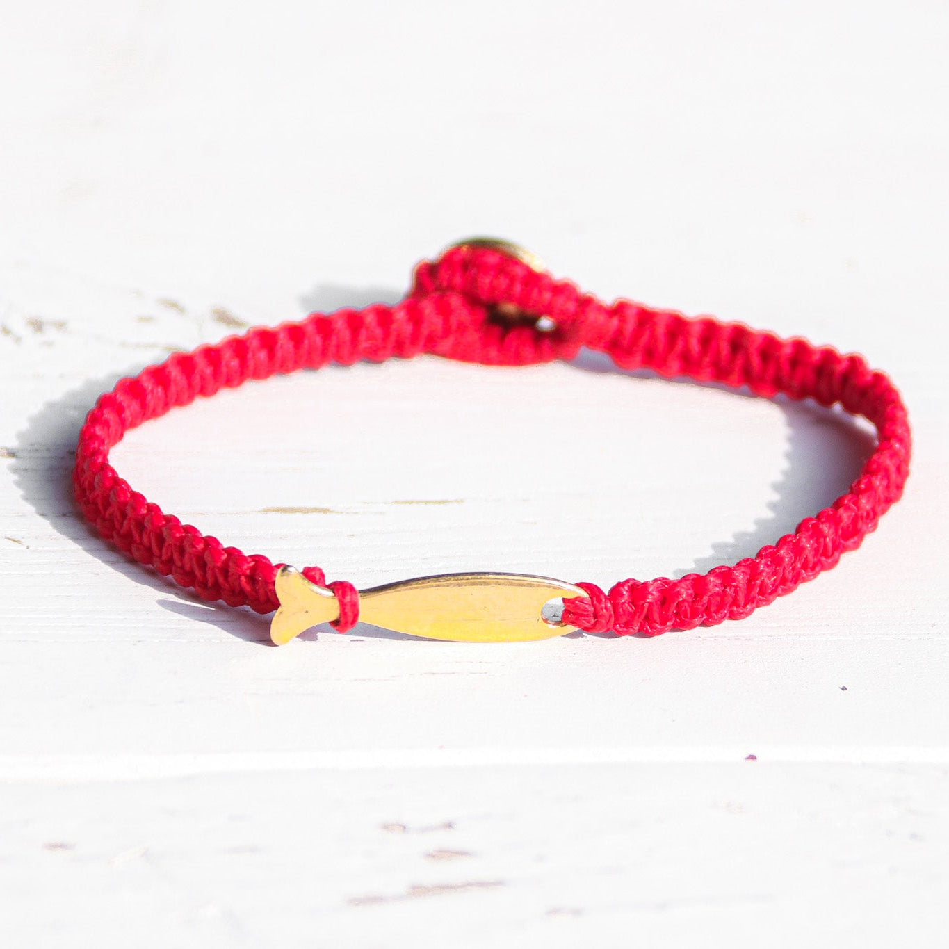צמיד Yemaya משלב חוט אדום עז ודג העשוי מציפוי זהב, חיבור בין תשוקה ואור, בין עומק המים לחום החיים, תזכורת שקטה לכוחו המרפא של הים ולזרימה שהוא מביא עמו.